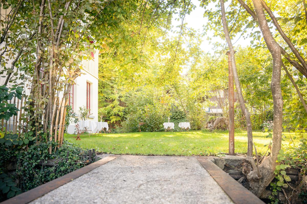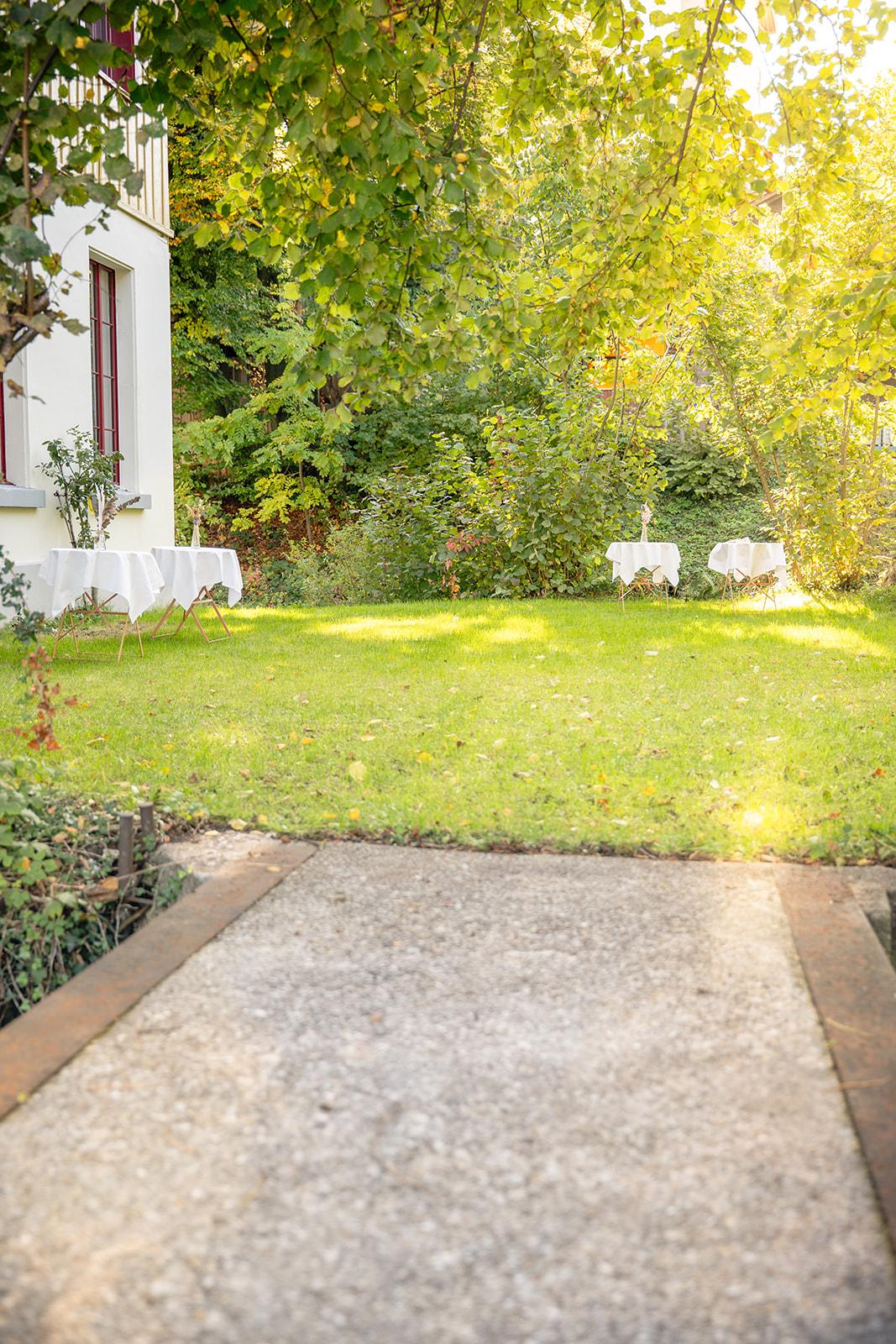Unser Apéro-Bereich im Aussenbereich liegt idyllisch eingebettet in die Natur – umgeben von alten Bäumen, sanftem Grün und dem beruhigendem Klang zweier kleiner Bäche.