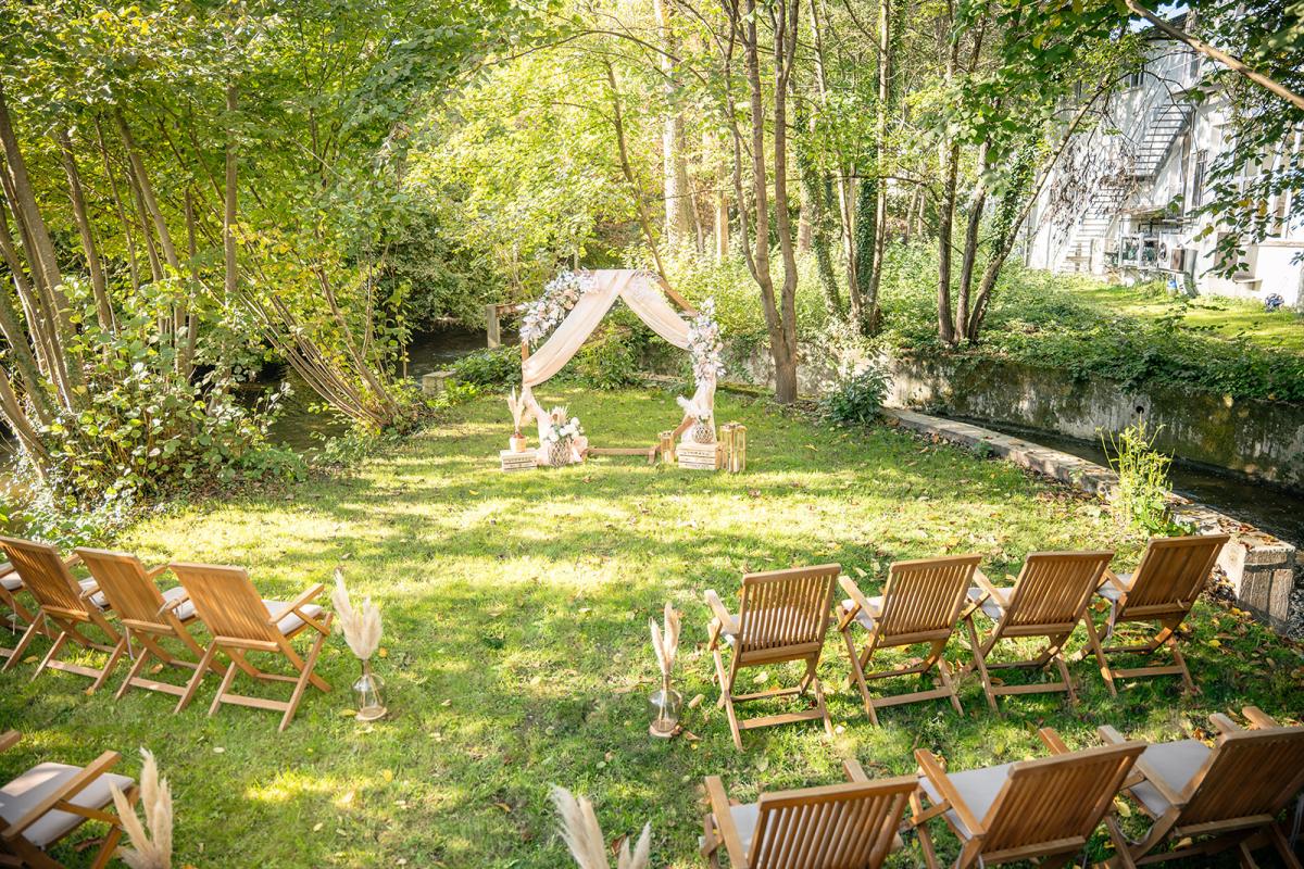 Eingebettet in der schönen Natur, umgeben von Bäumen und dem beruhigenden Klang zweier kleiner Bäche welche den Ort sanft umschliessen, bietet unser Traugarten die perfekte Kulisse für euren ganz persönlichen Moment. Unser Outdoor-Traugarten bietet Platz für bis zu 100 Gäste und ist somit ideal für Trauungen im grossen oder kleinen Rahmen. Im Anschluss an die Zeremonie lädt die Umgebung auch zu einem stilvollen Apéro im Grünen ein – für unvergessliche Begegnungen, liebevolle Gespräche und erste gemeinsame Schritte als frisch vermähltes Paar.